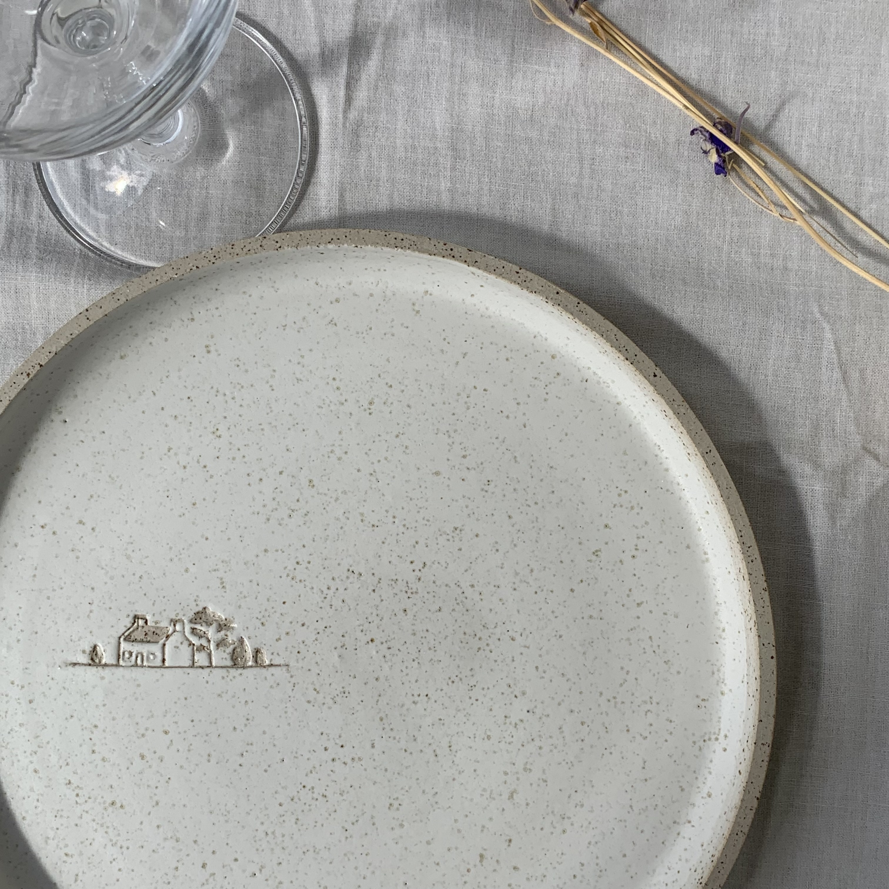 Assiette aux lignes douces et bords légèrement remontants réalisée au tour. Elle présente un décor minimaliste inspiré de paysages Bretons. Pour composer vos mets autour ou se laisser surprendre en fin de repas.
