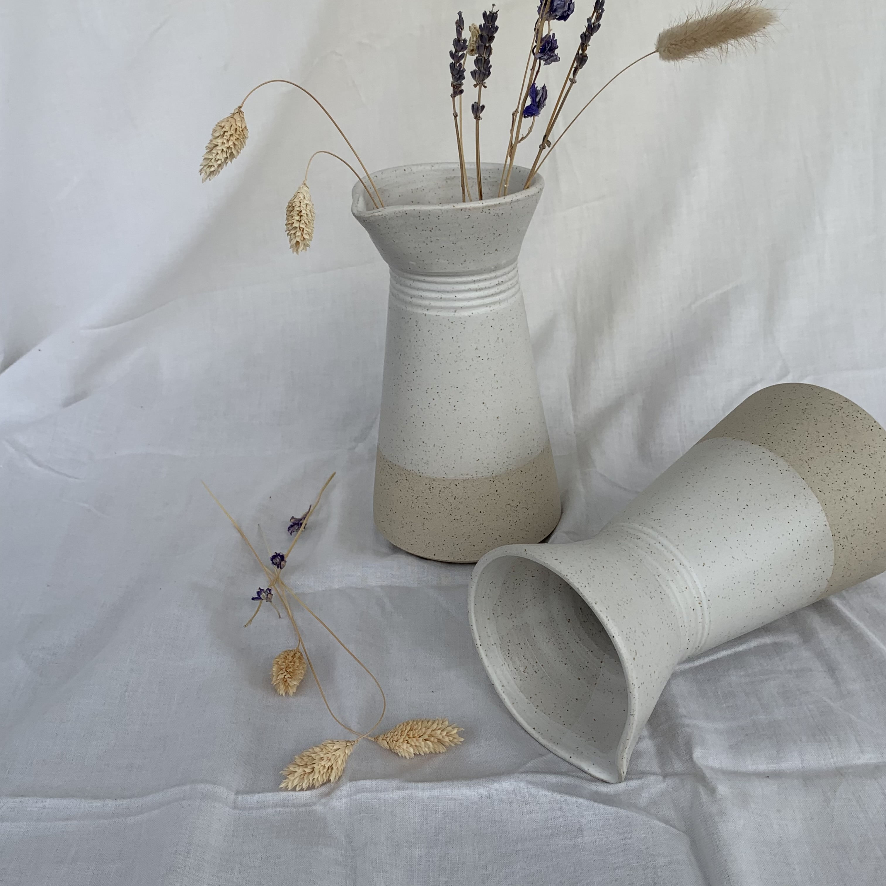 Carafe sans anse pour un gain de place sur votre comptoir ou dans votre frigo. Etudiée à travers son ouverture et son cou texturé, la prise en main se fait sans souci même lorsque votre carafe est pleine.