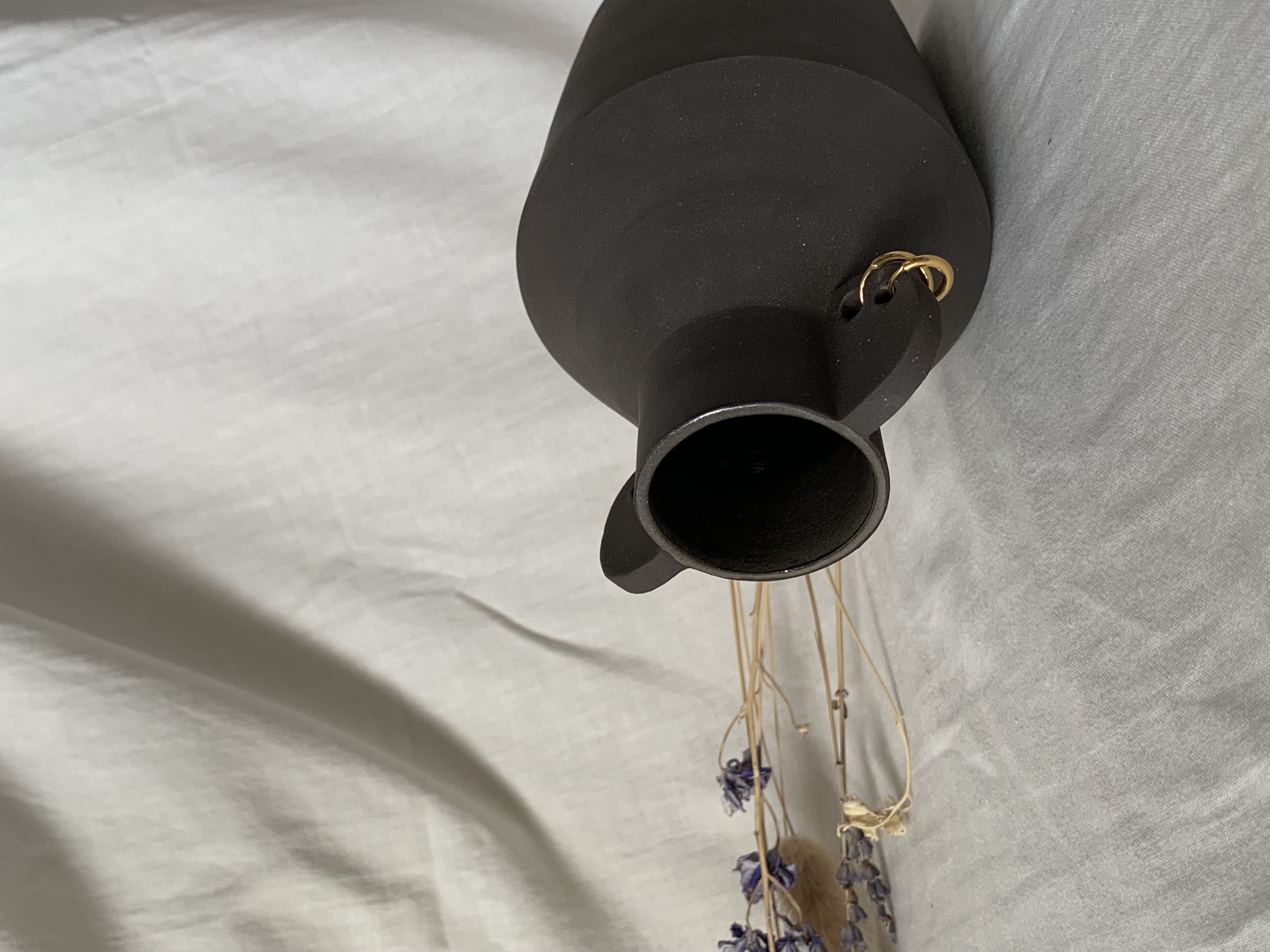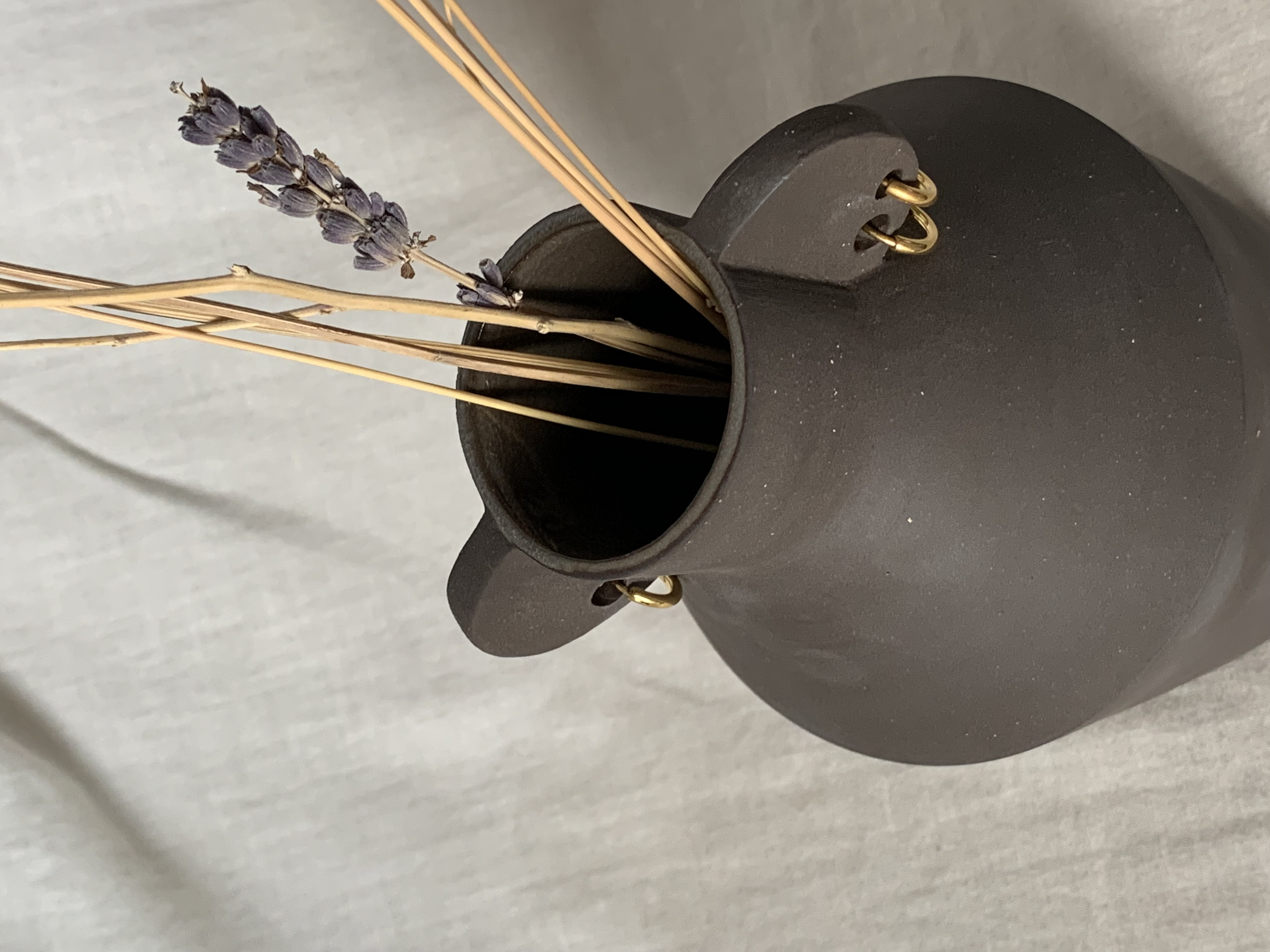 Ce petit bonhomme aux oreilles percées a été conçu au tour et par technique de modelage pour lui donner sa carrure unique à mi-chemin entre sculpture et objet fonctionnel.