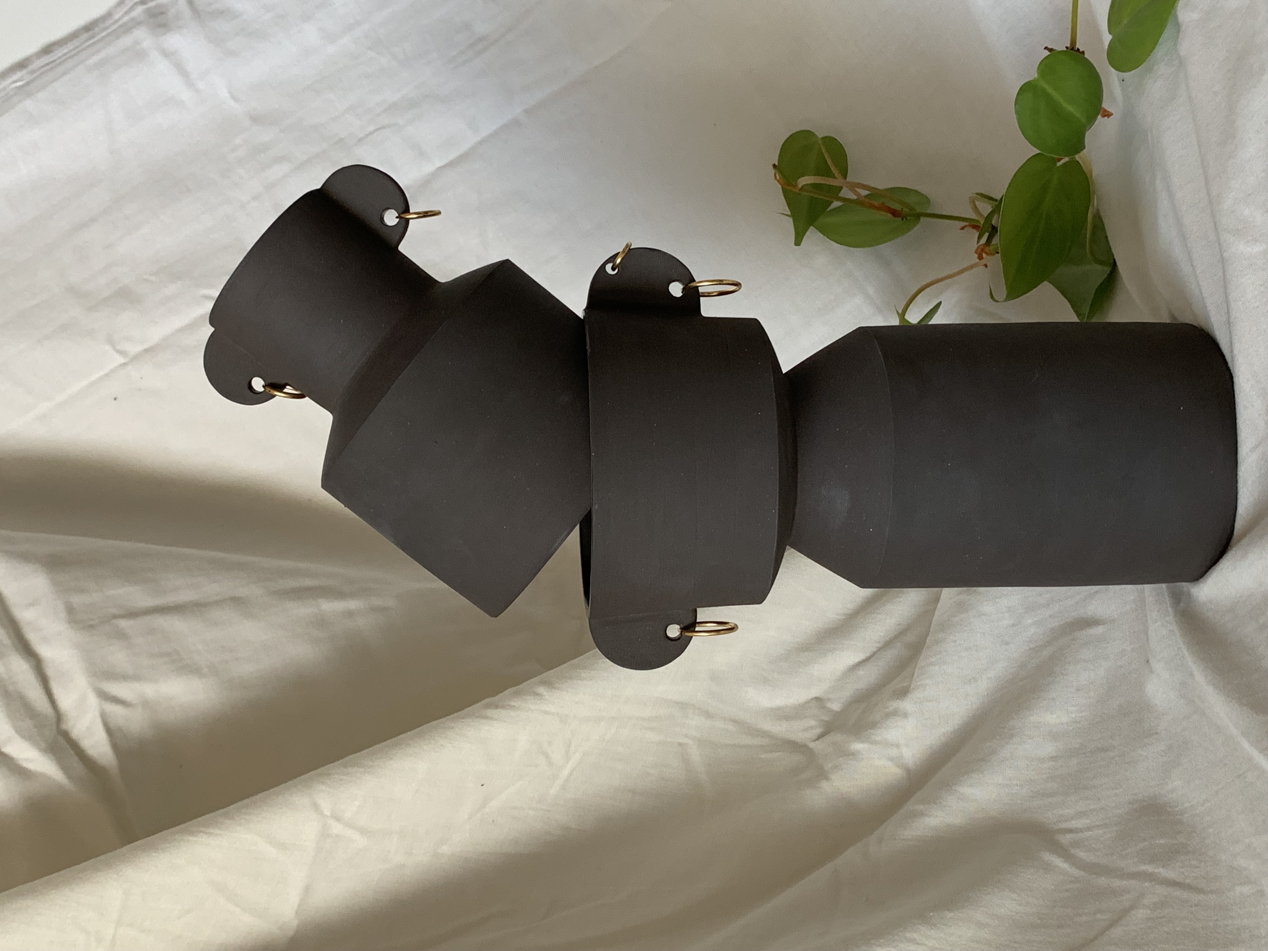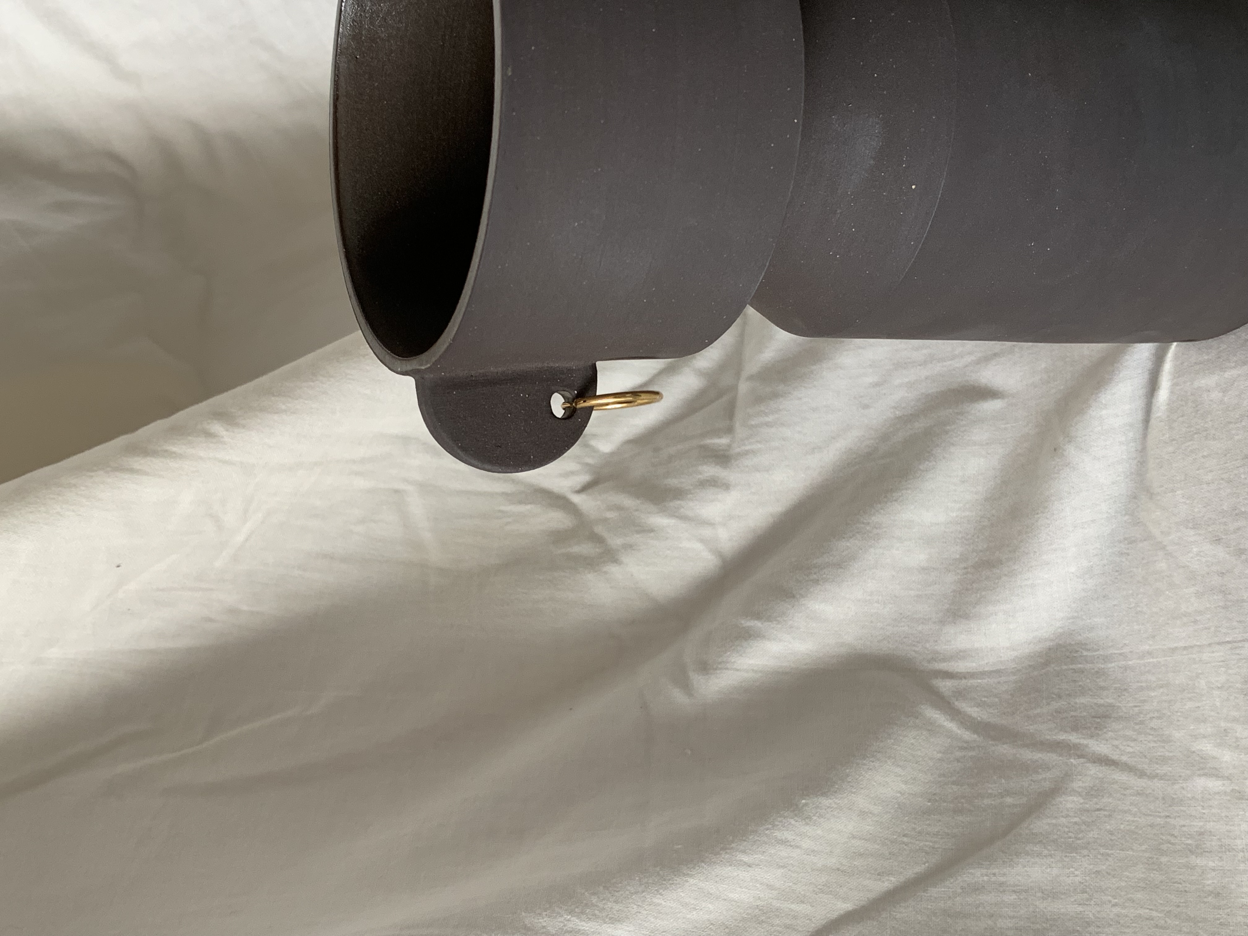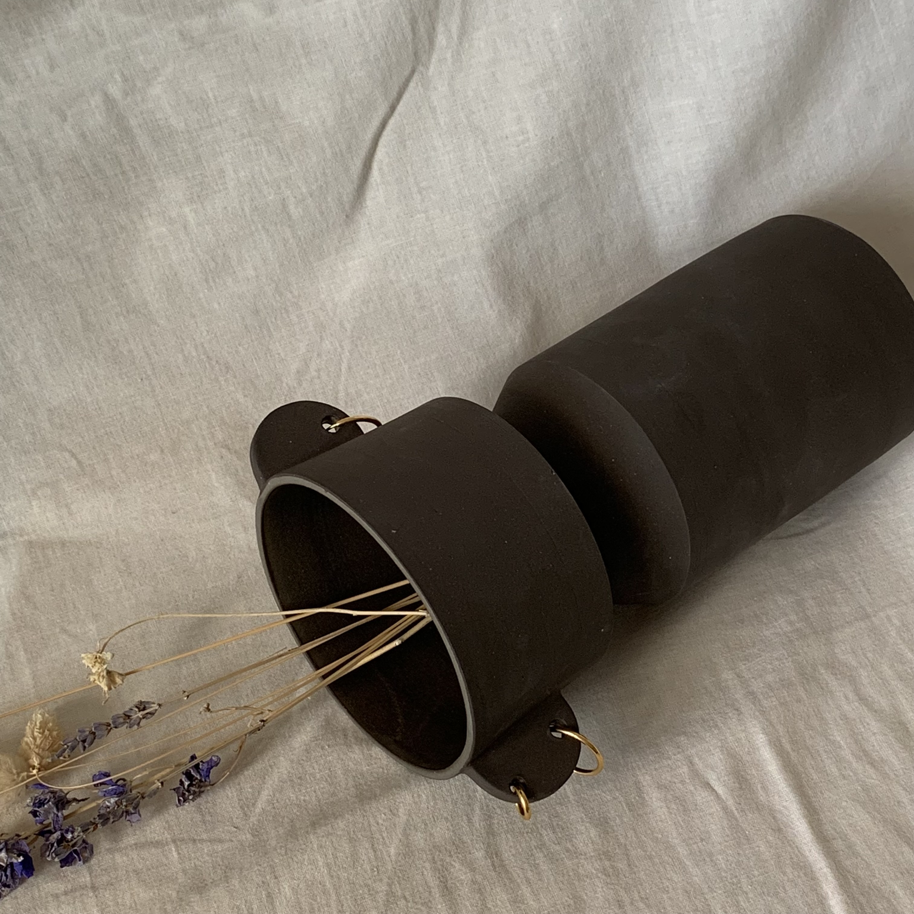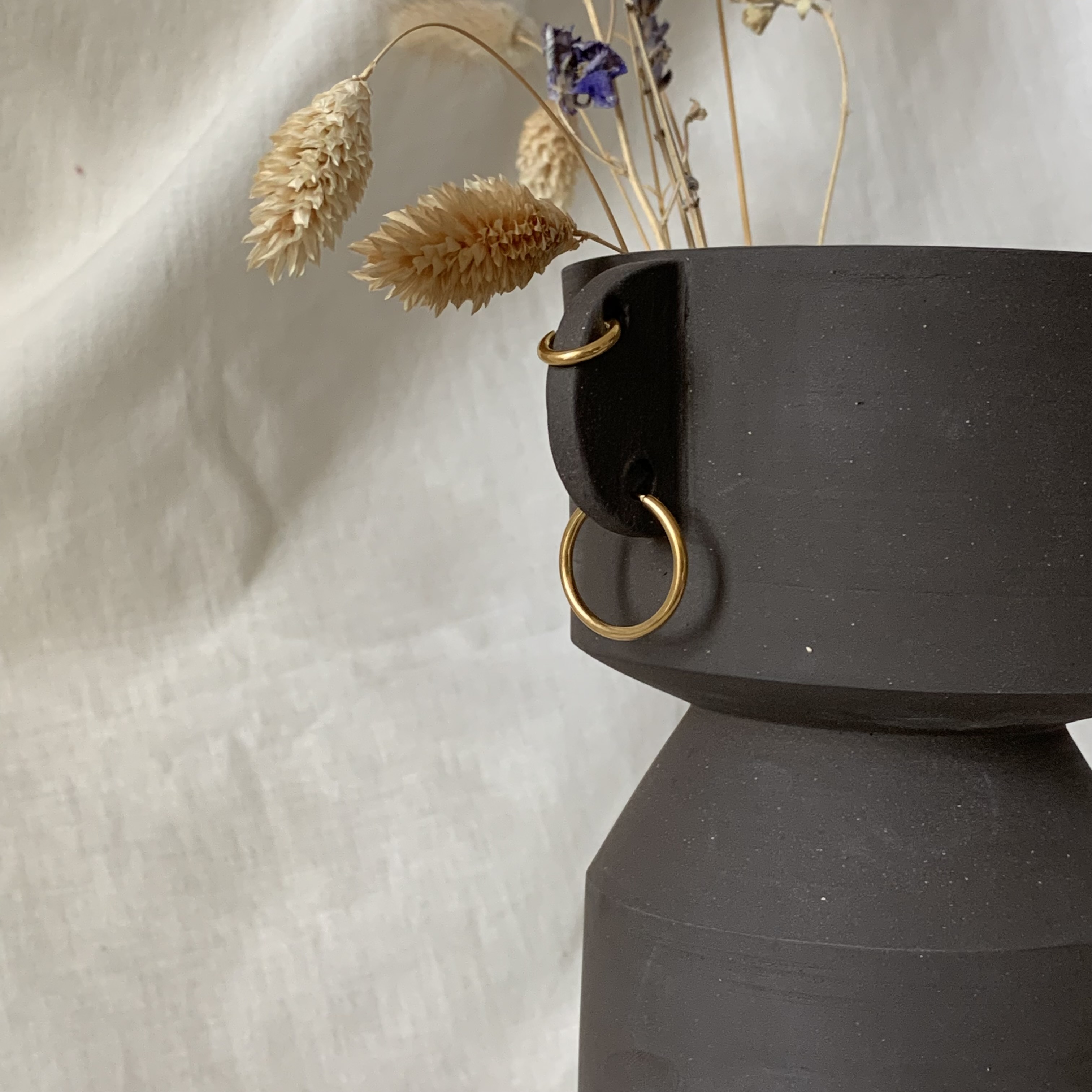 Ce petit bonhomme aux oreilles percées a été conçu au tour et par technique de modelage pour lui donner sa carrure unique à mi-chemin entre sculpture et objet fonctionnel.